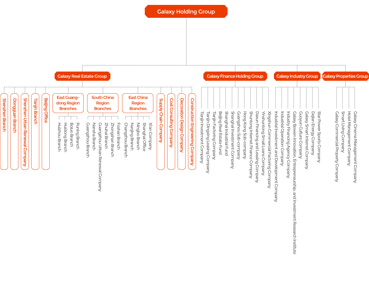 Galaxy Holding Group, founded in 1988£¬£¬£¬£¬£¬£¬£¬£¬has become a large-scale comprehensive investment group, with five major business groups: real estate, finance, industry, commerce, and property. We cover varied businesses including real estate development, urban renewal, business operation, hotel management, property services, finance and investment, and industrial operations.