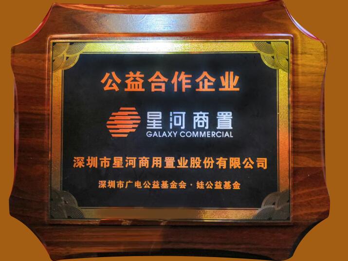 On June 12, under the guidance of SZMG Public Welfare Foundation and Shenzhen Preschool Education Association, the donation ceremony of "Love Fair, Love in childrens'day, 2019" organized by SZMG Public Welfare Foundation and KIDs Public Welfare Foundation was solemnly held in the Shenzhen Media Group. Galaxy Commercial Real Estate Group is awarded the "Public Welfare Cooperative Enterprise" medal by SZMG Public Welfare Foundation and KIDs Public Welfare Fund, in order to commend and thank Galaxy Commercial Real Estate Group for its strong support for such public welfare activities as "supporting education" and "KIDs Voluntary Sale" in 2019.
